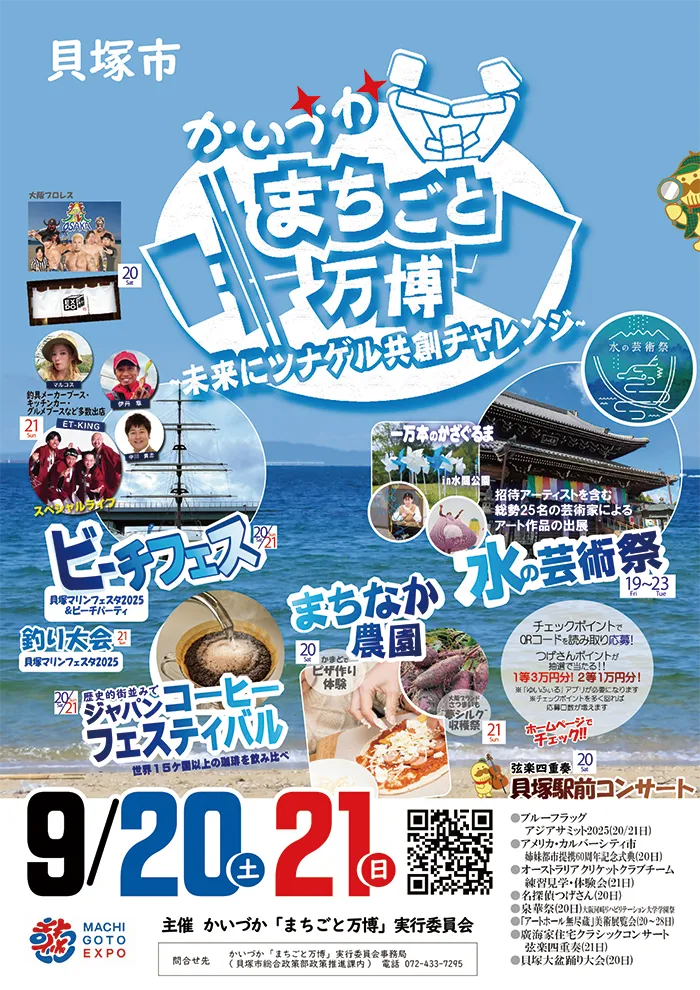 市内の各所をパビリオンに見立て、音楽・グルメ・アート・国際交流・体験イベントなど、多彩なプログラムが繰り広げられる、まさに貝塚史上最大のイベントです!