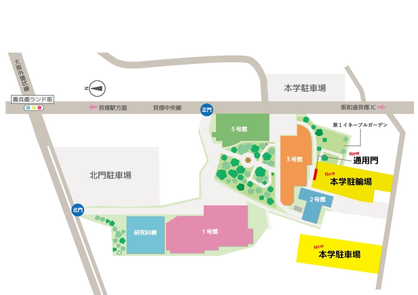 あわせて、第1イネーブルガーデン内に通用門を新設いたしましたので、通学の際はこちらもぜひご利用ください。