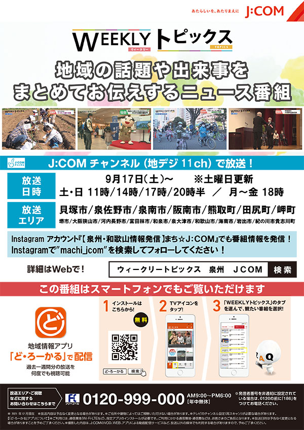 J:COM の「WEEKLYトピックス~堺/南大阪/和泉・泉大津/泉州/和歌山~」に、