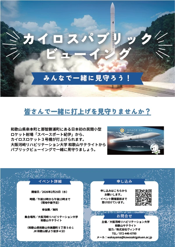 【延期】2/25(水) 「カイロスロケット打ち上げ」パブリックビューリング のお知らせ