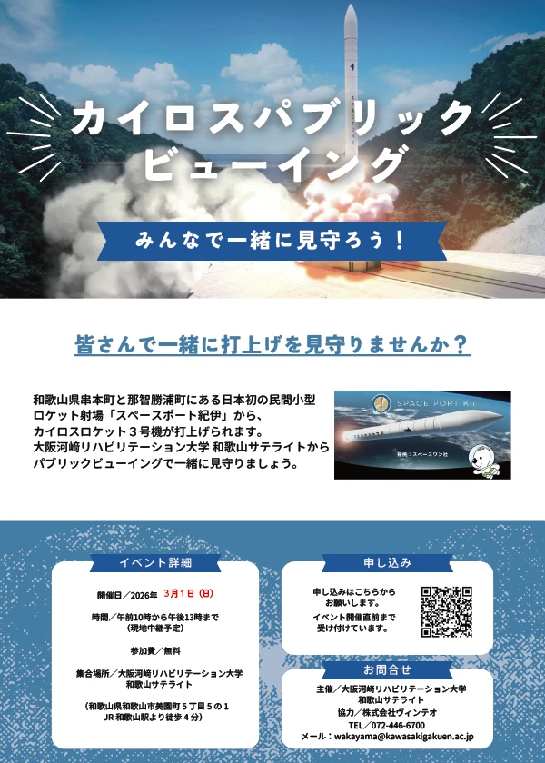 3/1(日)「カイロスロケット打ち上げ」パブリックビューリング のお知らせ