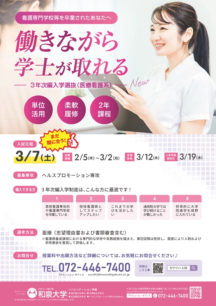 2026年度入学試験 3年次編入学選抜(医療看護系)追加実施について