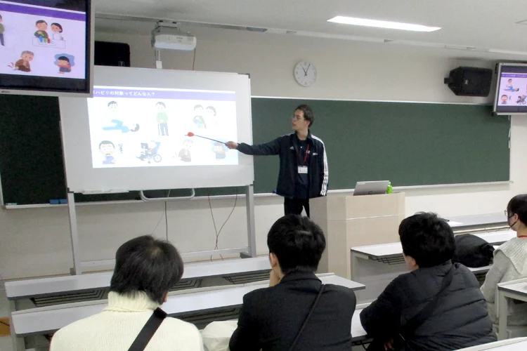 リハビリテーションと聞いてどんなイメージを思い浮かべますか?作業療法では体だけでなく「心」に働きかけるリハビリも行われます。この授業では見えないけれど確かに存在する作業の力に注目し、作業療法について体験的に学びます。遊びの中にひそむリハビリのヒントを一緒に感じてみましょう。