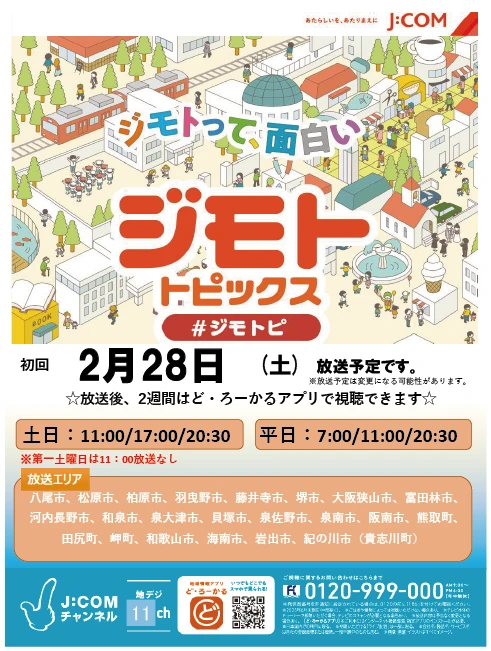 J:COM の「ジモトトピックス(泉州/和歌山)」にて、本学の大学名称変更および2026年度オープンキャンパスの告知が放送されます。